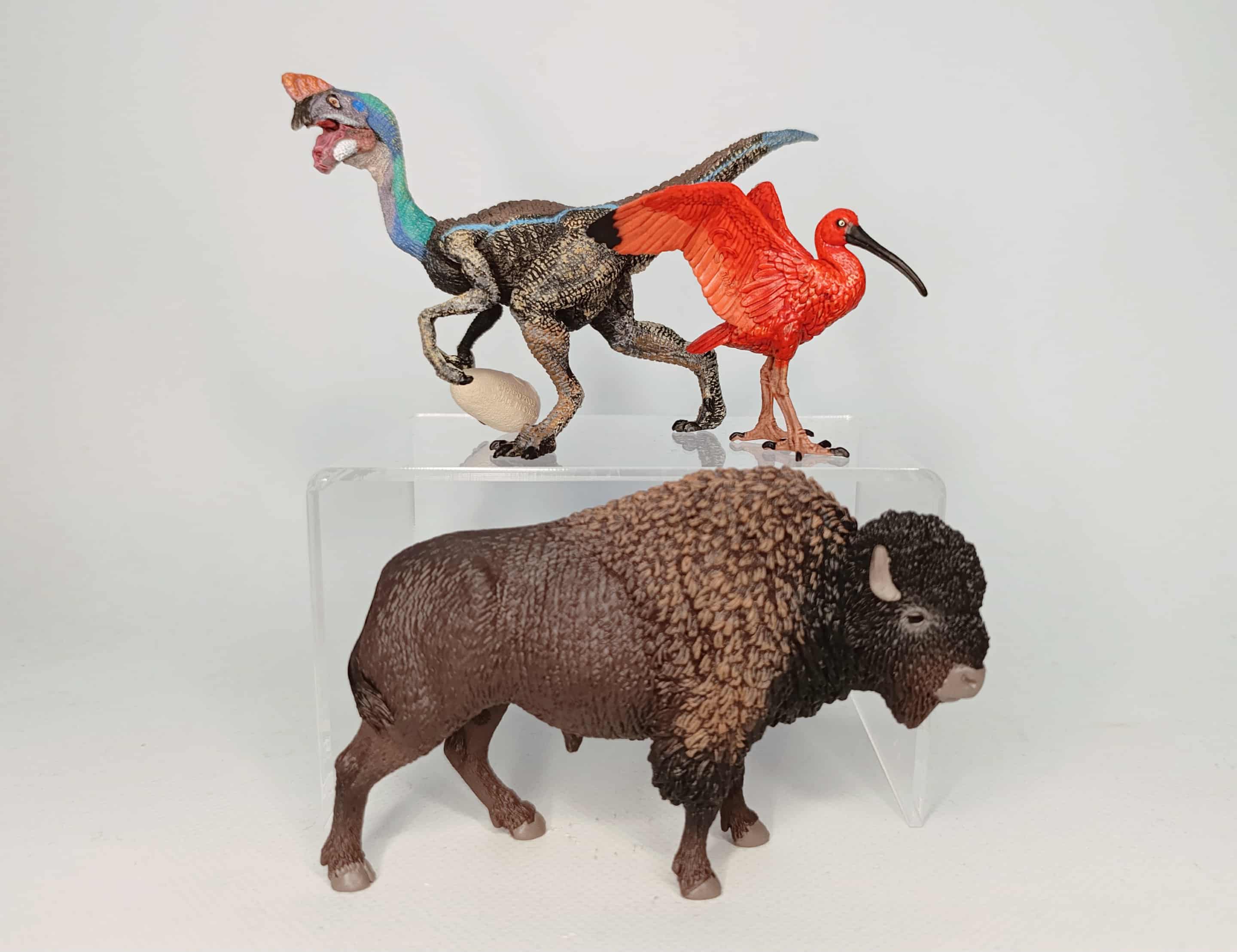 Tři velice povedené modely rozšiřují moji sbírku. Velice povedený býk Bizona severoamerického od Schleich, který nabízí spoustu zajímavých detailů, ale je trochu zbaven jejich robustního a majestátního vzhledu, kterým bizoni oplývají... Naprosto nádherný Ibis rudý od Papo, jehož naprosto dechberoucí detaily dokazují, že Papo je v ptácích špička. A posledním modelem je nádherně barevný zástupce prehistorie, zloděj vajec, Oviraptor. Je nádherný a plný zajímavých detailů.