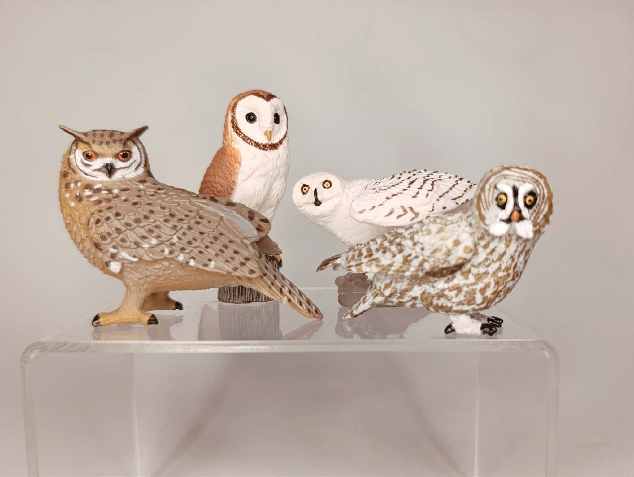 Další 4 kousky od Safari Ltd jsou součástí mé sbírky. Tentokrát jsou to zástupci soví rodiny. Konkrétně Výr velký, Sovice sněžní, Sova pálená a Puštík vousatý. Nikdy jsem si moc nemyslel, že budu mít ve sbírce tolik sovích modelů, kolik mám, ale musím říci, že jsou neskutečně fascinující zástupci ptačího světa.