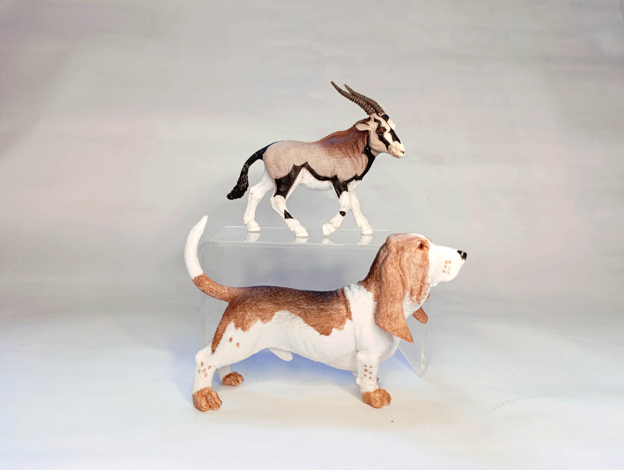 Svět antilop je pro mě jako náramek s přívěšky... Každý kousek je jiný. Oryxe od Chap-mei jsem hledal roky. Možná desítky let. A teď je konečně součástí mé sbírky ve dvou kusech. Je to povedený model s tak silnou osobností... Následuje úžasný baset od značky Atlas. Je tak realistický, že jsem ho prostě musel mít. Ale je to moje nejoblíbenější psí plemeno, takže jsem nemohl odolat.