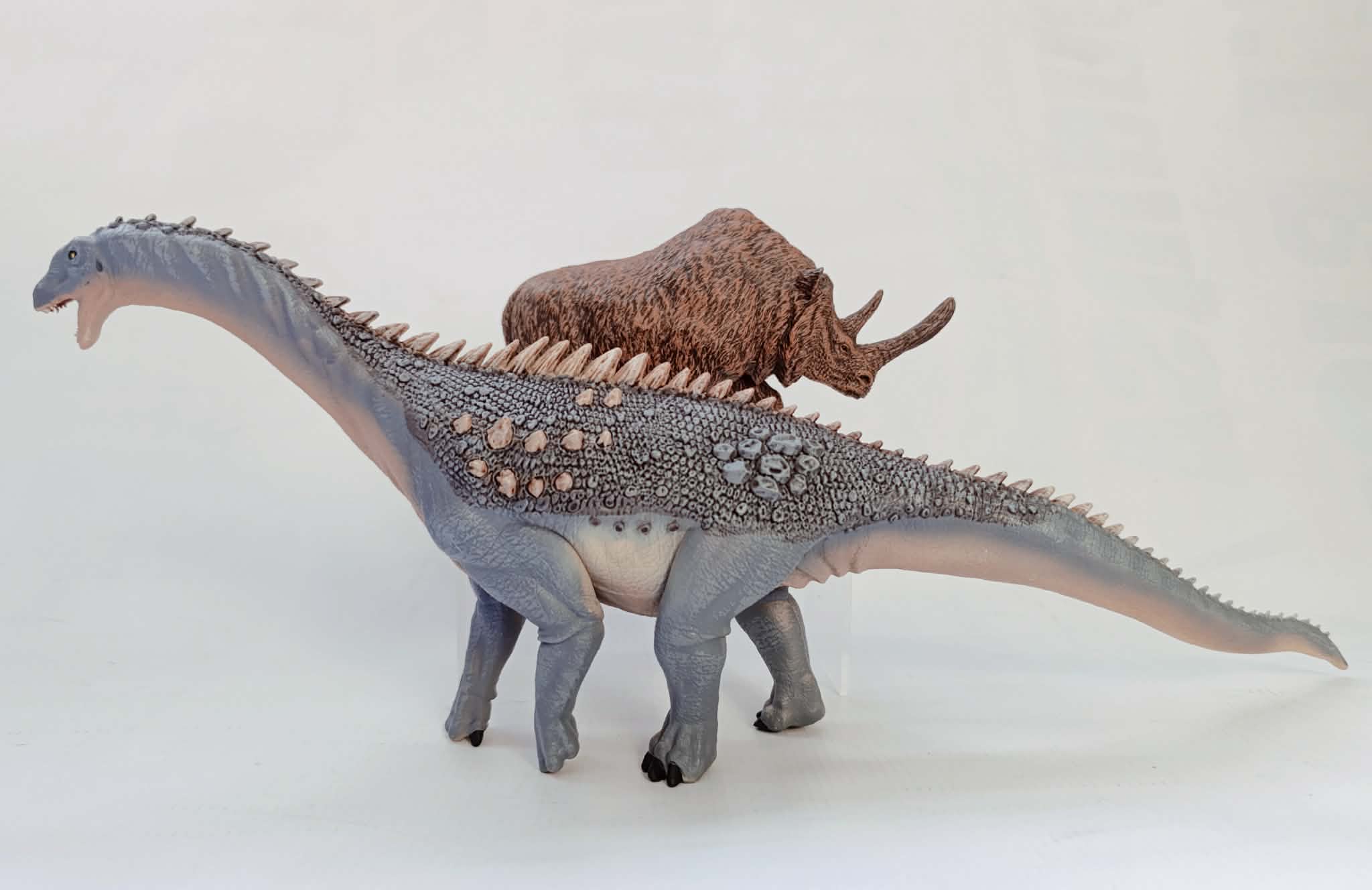 Vánoční svátky jsou vždy dobrou příležitostí jak si rozšířit sbírku a přitom finančně nevykrvácet... A tak se stalo. Celkem deset kousků uzavírá můj sběratelský rok 2025. Od Mojo Figurines jsou to nádherné modely Nosorožce srstnatého, Mamuta srstnatého a Žraloka černoploutvého. Zástupci značky Papo France jsou rovněž Nosorožec srstnatý a mohutný sauropod Ampelosaurus, kteří disponují nádhernými detaily. Collectu zastupuje Medvěd babibal a Schleich tentoktát, pro moji sbírku ne úplně typické kousky, výroční model žirafy a zebry s duhovou výmalbou. Nejsem sběratel těchto výročních modelů, ale jelikož to byly dary od srdce, tak budou mít místo za mými skleněnými dvířky. Neznačkovými modely jsou kopie, které se bohužel na trhu rozmáhají čím dál více a jsou to Talířovka a Medvídek koala s mládětem.